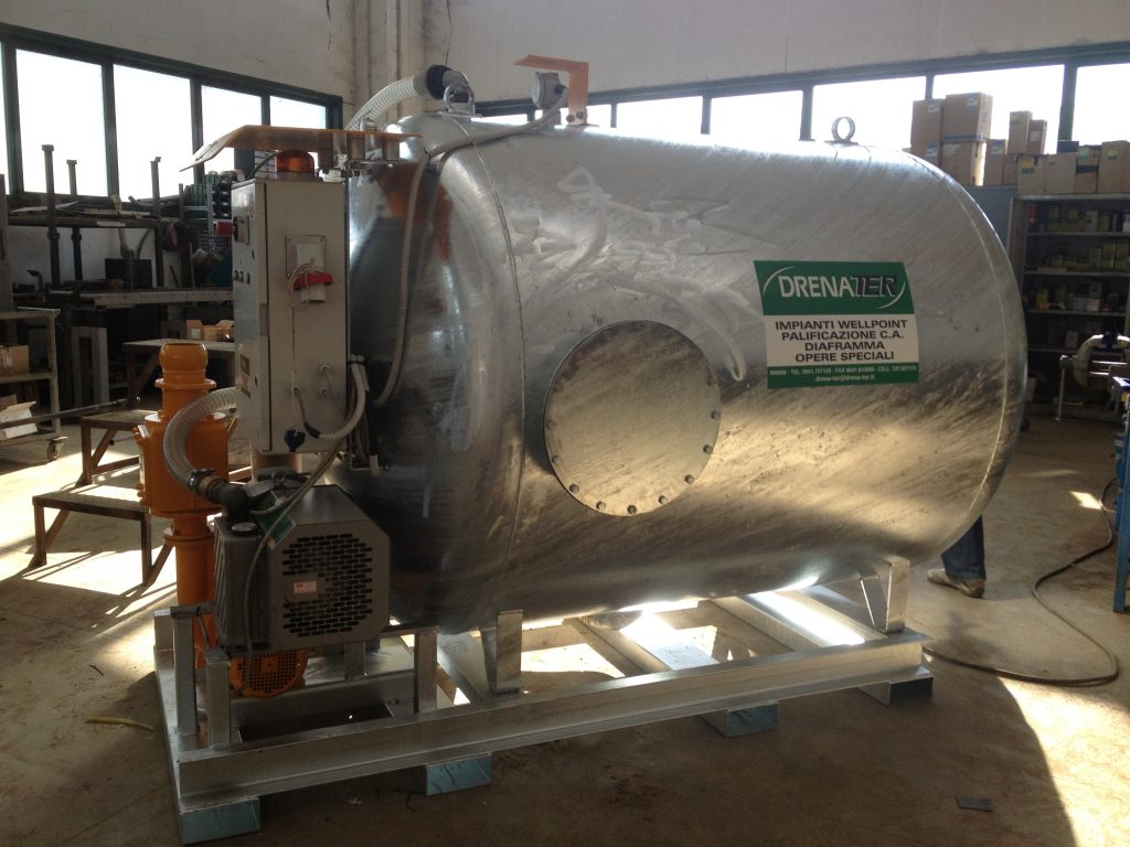 Le pompe specifiche per impianto wellpoint, vengono allestite con depressore ad aria, olio o acqua che consente a pari potenza di ottenere un considerevole aumento della portata e della prevalenza, permettendo così alle pompe di avere un continuo flusso d’acqua anche in presenza di perdite d’aria.